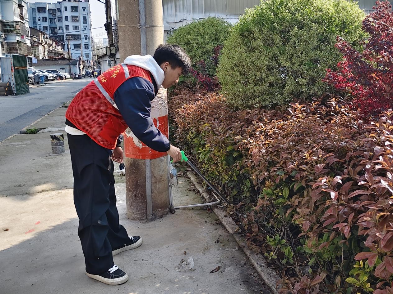 本网讯(通讯员 王仔鑫)为深入弘扬雷锋精神,践行“奉献、友爱、互助、进步”的志愿准则,助力社区文明建设与环境美化,2026年3月27日上午,体育系薪火体暖•银龄守护志愿服务队深入十方庵社区,开展“学雷锋传美德·美家园共缔造”主题志愿服务活动。青年志愿者们以理论宣讲凝聚精神力量,以实干行动美化社区环境,用青春担当传递温暖善意,让雷锋精神在基层一线落地生根、焕发新生。