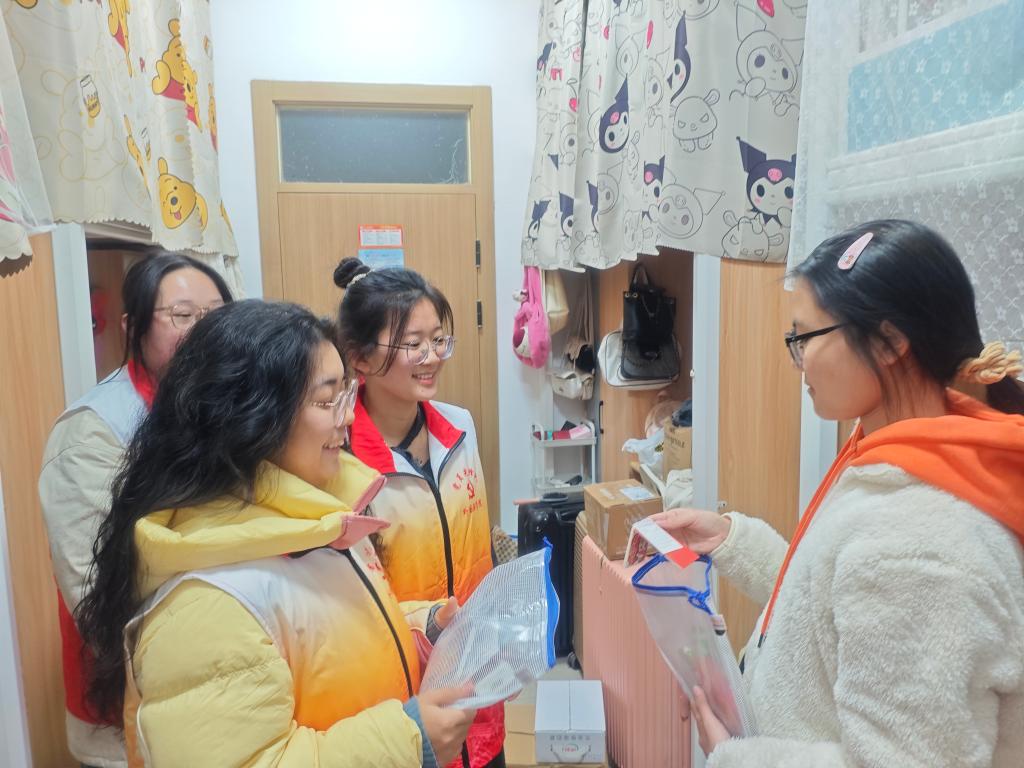 为确保物资发放有序高效,党员志愿者提前精准统计考研员工的宿舍分布、联系方式及作息习惯,建立起“一人一档”服务台账。考虑到考生复习时间紧张,服务队分组开展“送暖上门”,将“考研暖心礼包”逐一送至考生手中。