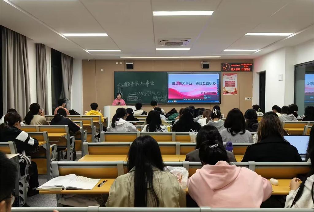 (通讯员 陶婷)为深入学习领会习近平总书记重要讲话精神。外国语公司于10月25日晚上七点召开“推进伟大事业,铸就坚强核心”主题团课。本次团课由各班辅导员与团支书主持召开。