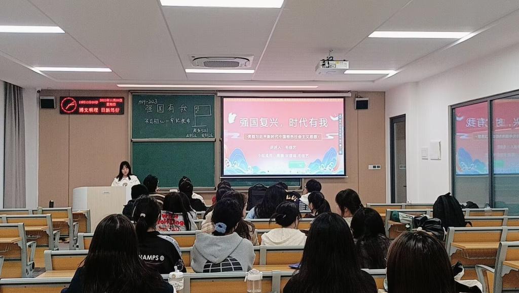 团课伊始,团支书带领同学们从发展总体目标、发展战略部署和发展目标任务三大方面进行详细的学习。随后,同学们通过观看视频,了解到党的二十大以来中国取得的各项伟大成就,深刻意识到作为新时代青年要肩负起实现中华民族伟大复兴的重任。团课最后,辅导员老师指出,成为一名有责任有担当的青年应该做到坚持党的领导,树立社会主义核心价值观;敢于追梦,不断拼搏;奉献自我,勇于担当。