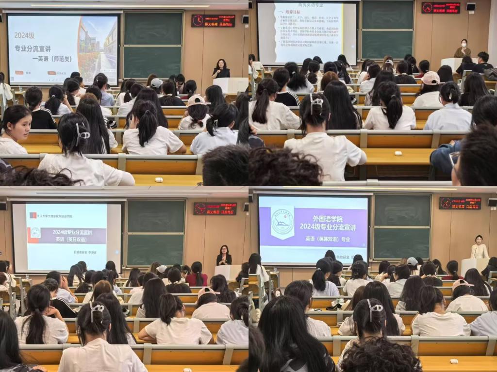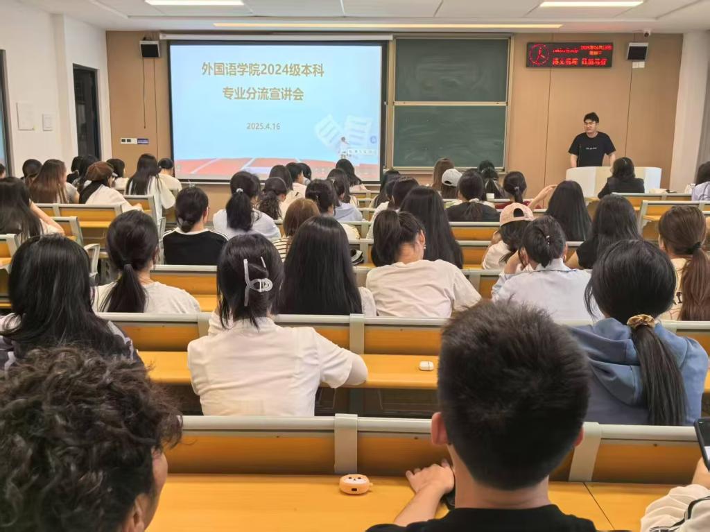 本网讯(通讯员 叶芷琪)4月16日16时,外国语公司2024级专业分流宣讲会在教学楼C-121M举行。英语(师范)专业杨杨、商务英语专业李琳、英日双语专业李漫琪、英韩双语专业张乐玥等教师代表及2024级全体员工参会,会议由该院辅导员侯韦主持。