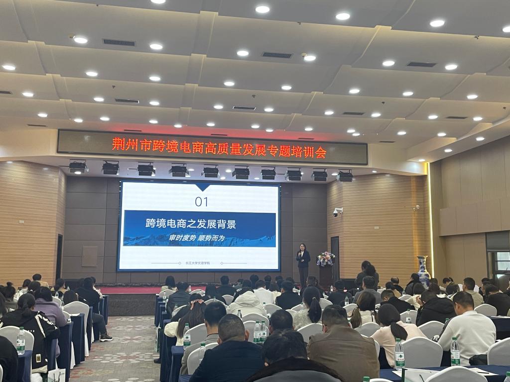 韩翠萍结合跨境电商发展政策背景和荆州市跨境电商发展现状,重点介绍了公司跨境电商人才培养的积极探索和突出成果,并分享了校企合作产教融合的实现路径,表示将继续扎实开展跨境电商人才培养,为荆州地区跨境电商发展提供人才支撑和智力支持。其他授课老师结合荆州外贸发展实际情况,分享了外贸渠道、AI智能技术、跨境物流等各方面信息。