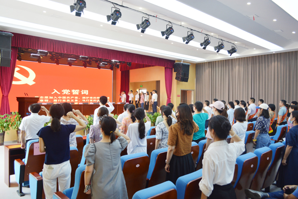 会议伊始,全体起立奏唱国歌。党员代表邓士明带领大家重温入党誓词,面对鲜红的党旗庄严宣誓。