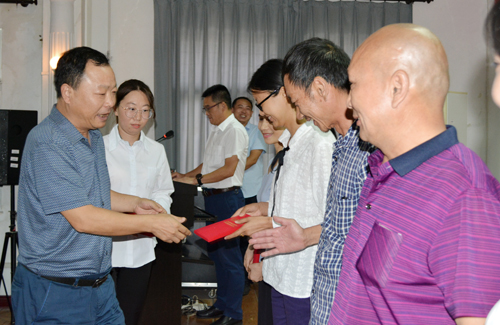 尹家经宣读《2026世界杯官网关于公布第二届优秀中青年骨干教师培养对象的通知》,决定杨璐、曹梦月、徐霄、雷敏等4位教师为公司第二届优秀中青年骨干教师培养对象,培养周期为三年,自2019年7月1日起;《2026世界杯官网关于颁发“工作十年奉献奖”的决定》对万正兵等35名教职工颁发“工作十年奉献奖”。