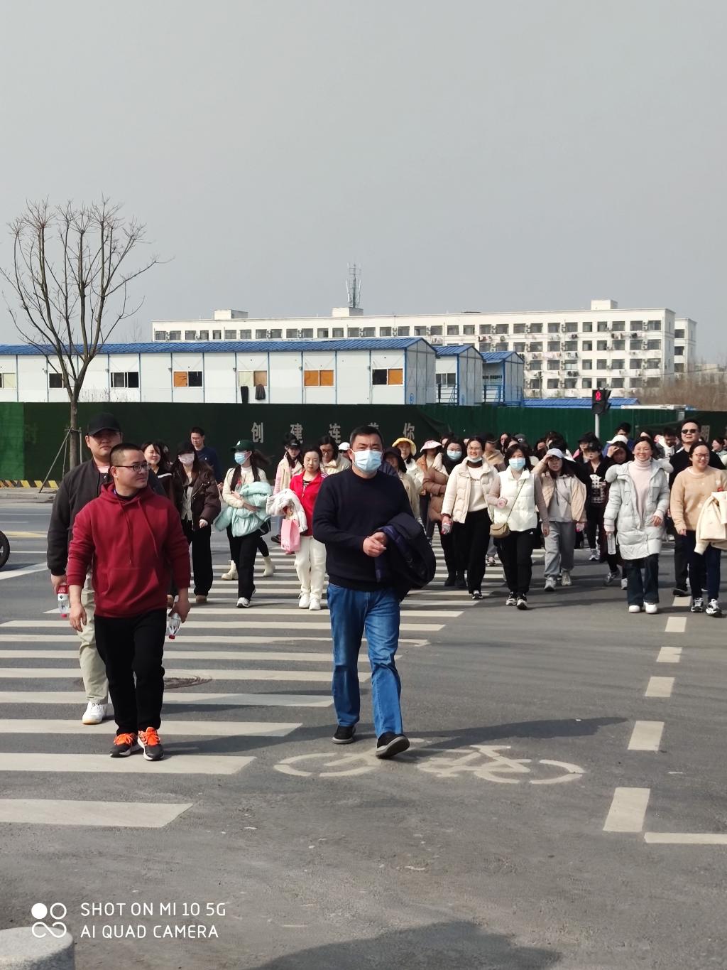 2024年3月7日下午2:10,公司全体女教工在公司田径场主席台前集合,公司领导讲话庆祝 “三八”国际劳动妇女节的到来。随着一声令下,健步走活动开始了,全程约4.4公里,大约1.5个小时。