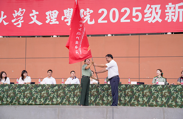 最后,李则俊向军训团授旗,并宣布2025级新生军训正式开启。