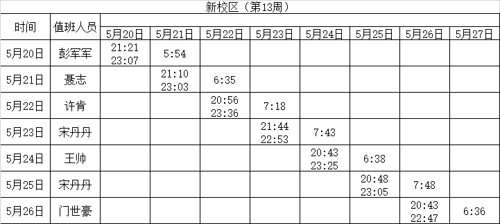 2023-2024学年第二学期第13周学工人员寝室值班通报