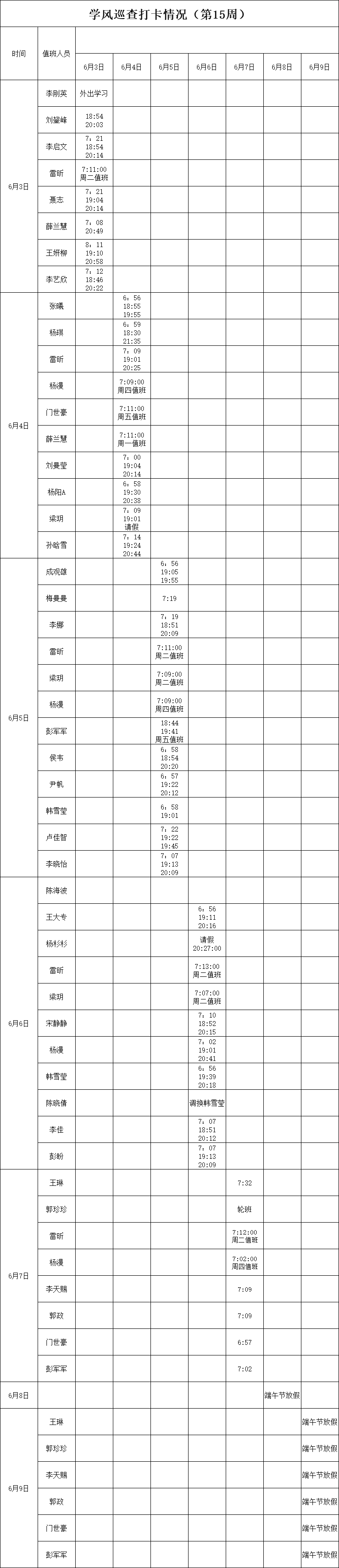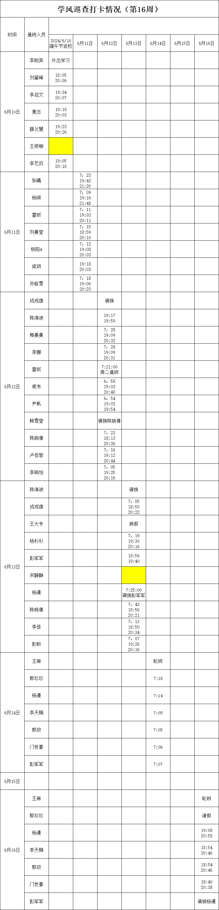 2023-2024学年第二学期第15-16周学风巡查打卡情况公示