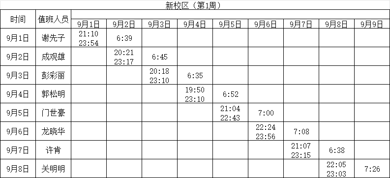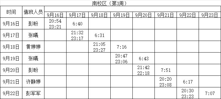 2024-2025学年第一学期第1-3周学工人员寝室值班通报
