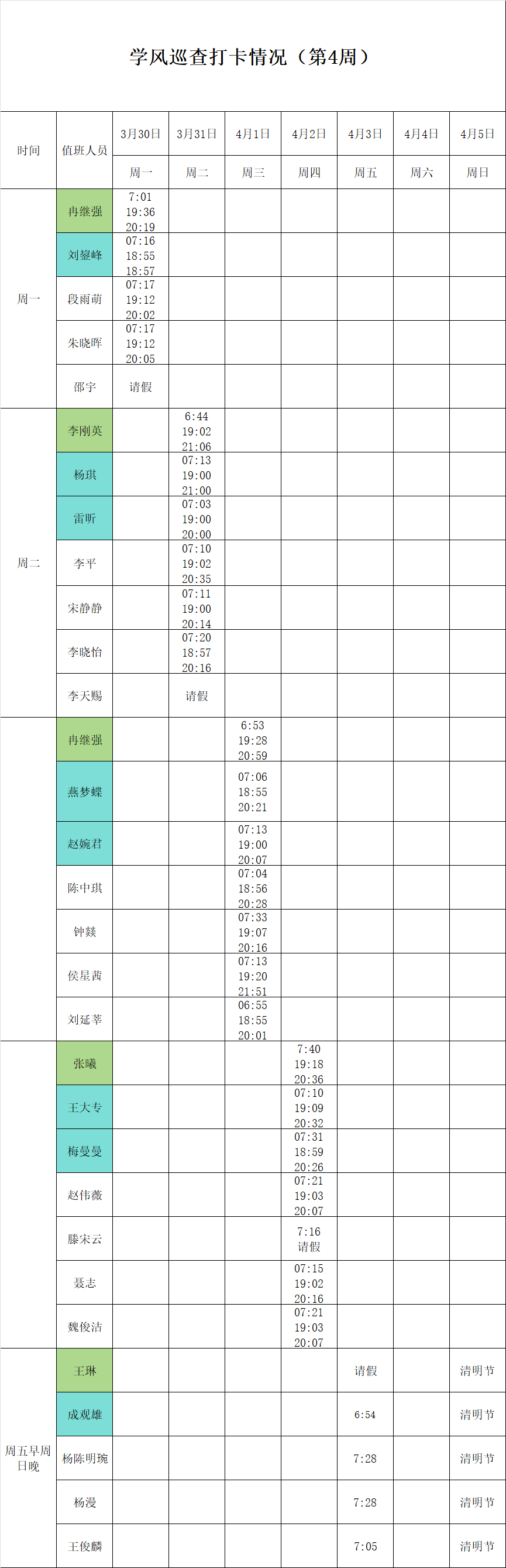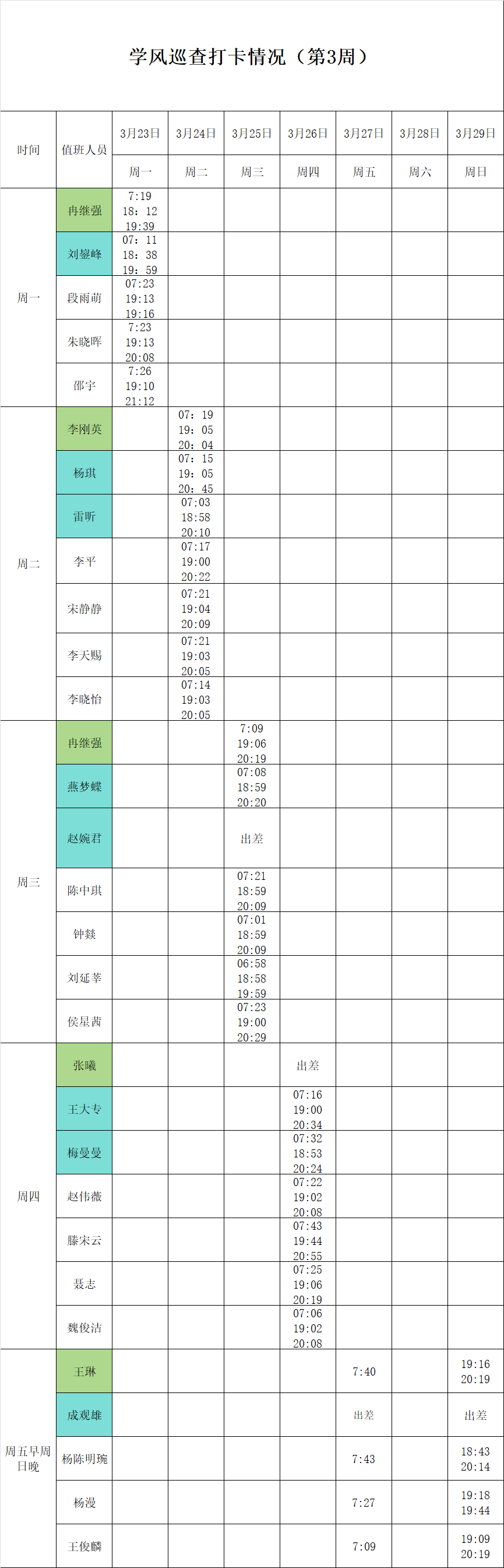 2025-2026学年第二学期第3-4周学风巡查打卡情况公示