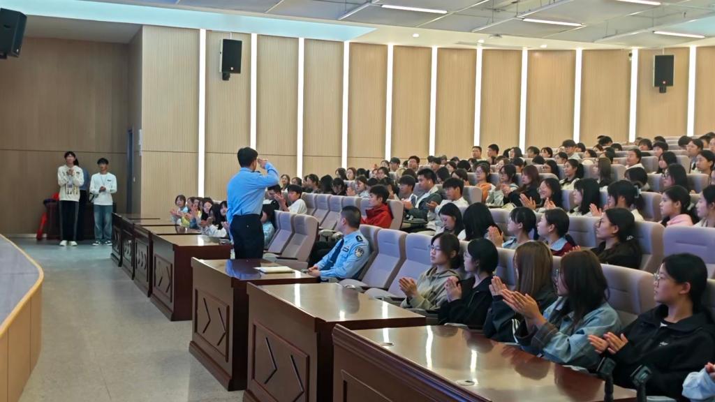 本次讲座的“重头戏”由被誉为“江河卫士”的长江航运公安局荆州分局荆州派出所民警团队倾情呈现。苏毅哲警长首先带领大家直击“溺水真相”,他用清晰的逻辑链条,层层剖析了溺水事故的高发场景与常见诱因,甚至生动描绘了溺水发生时身体的细微变化,将抽象的风险转化为可知可感的科学认知。紧接着,一幕幕发生在本地的真实案例被搬上讲台,苏警长以案为鉴,深刻揭示了每起悲剧背后的疏忽与教训,犹如一记记警钟,在师生心中久久回荡。结合荆州河网密布、沟渠众多的特点,他还化身“安全导航”,清晰标注出身边隐藏的危险水域,再三叮嘱师生对未知水域保持敬畏,切勿让侥幸心理酿成憾事。