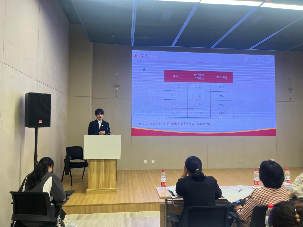 答辩开始前,主持人宣读了公司的相关文件和通知,介绍了国家奖学金评审要求,明晰了此次国家奖学金评选的答辩规则。答辩现场,选手们精神饱满、从容自信,通过PPT展示的方式,从学业成绩、科研创新、社会实践、志愿服务等多个维度,分享了自己在大学的成长与收获。他们中既有深耕学术、斩获多项国家级竞赛奖项的“学霸”,也有投身科研、在专业领域探索创新的“先行者”,更有扎根基层、用行动诠释责任担当的“志愿先锋”,每一段经历都彰显着青年学子的理想与追求,赢得了现场阵阵掌声。