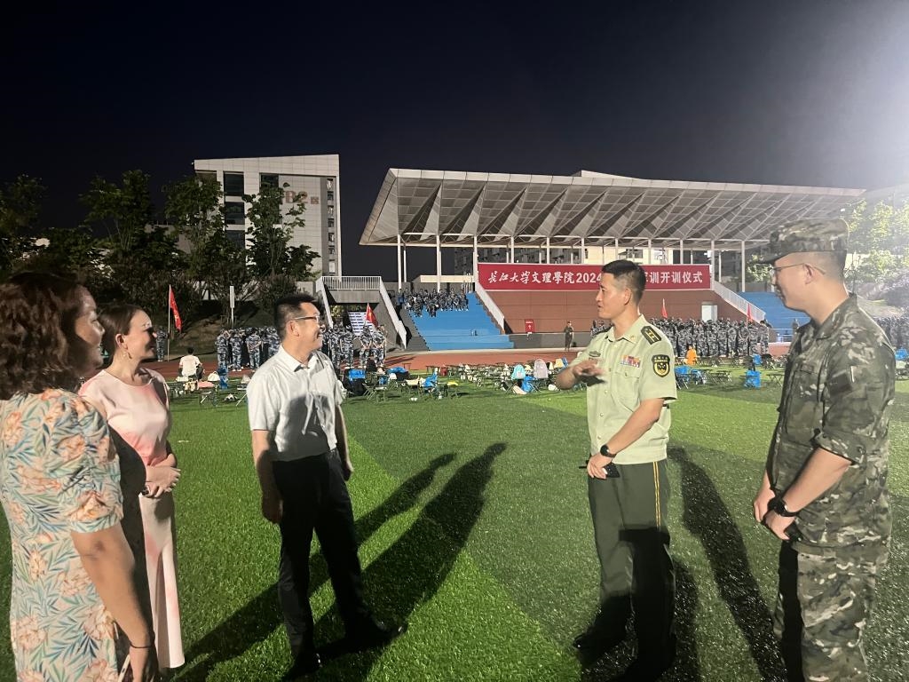 9月9日晚19时,公司领导公司党委书记颜建洲在军训团团长武警支队副支队长张坤、党委员工工作部部长李刚英的陪同下,深入军训现场检查指导新生首日军训工作,并慰问参训的教官及师生。