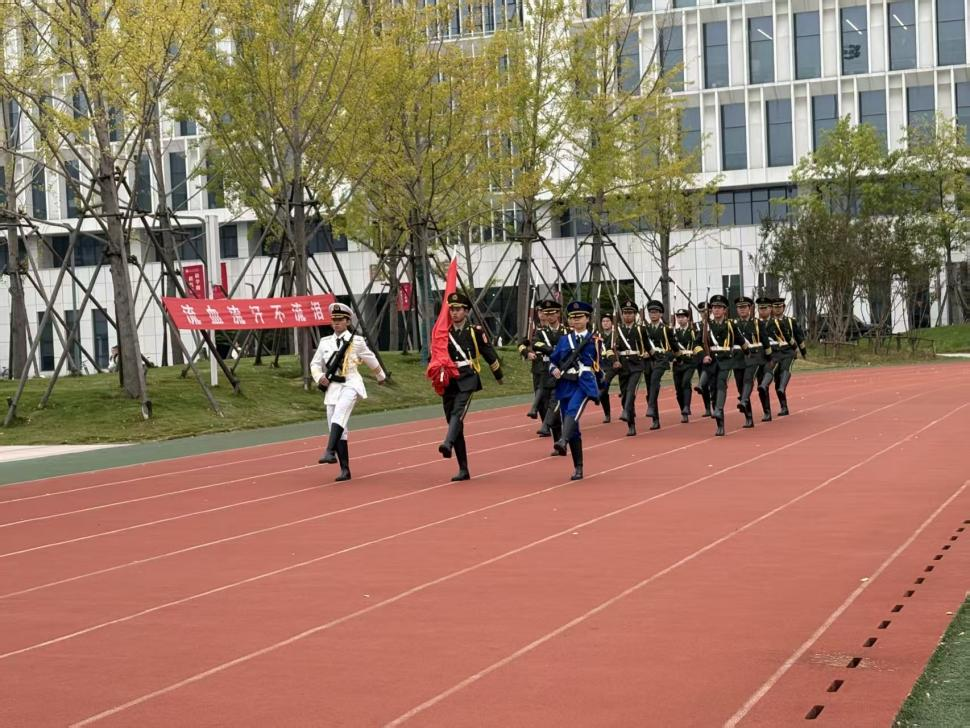 仪式开始,国旗护卫队队员身着笔挺仪仗队服,迈着铿锵步伐护送国旗入场,每一步都彰显着对国旗的尊崇与对祖国的赤诚。伴随庄严的国歌声,五星红旗在晨光中冉冉升起,全体师生肃立行注目礼,目光追随着那抹鲜艳的中国红,心中满是对祖国的自豪和骄傲。
