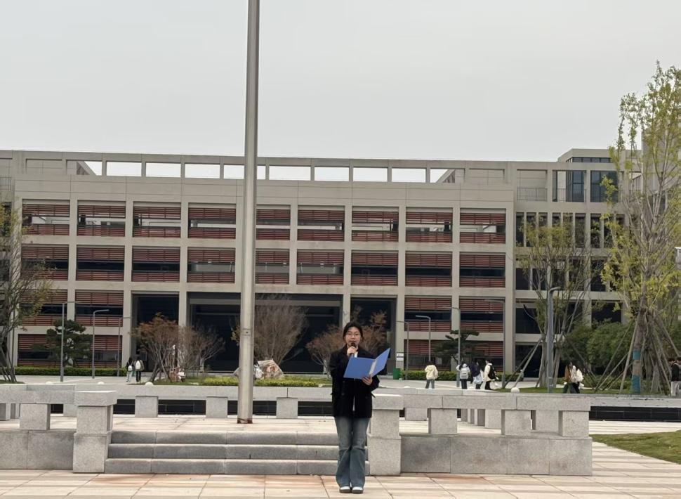 随后,员工代表吴潇堉以《以青春之名,贺祖国华诞》为题发言,结合外语专业特色,阐述青年学子如何以语言为桥讲好中国故事。教师代表许静婷老师以《以青春小我,筑梦时代华章》为题,鼓励同学们把英语从“一门专业”变成“一种能力”。