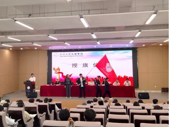 会议第三项议程,由党委员工工作部副部长王琳向第一届老员工自律委员会主席团代表授旗。