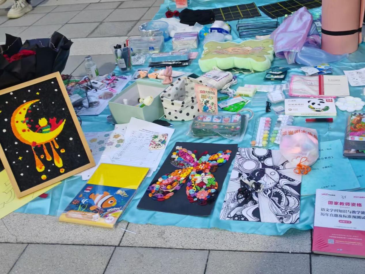 活动伊始,工作人员率先抵达现场,有条不紊地进行现场布置,精准划分区域,为活动有序开展筑牢基础。摊主们接踵而至,按照分配位置一一布置摊位,书籍、创意手工、饰品及玩偶在摊位上陈列整齐,错落有致。