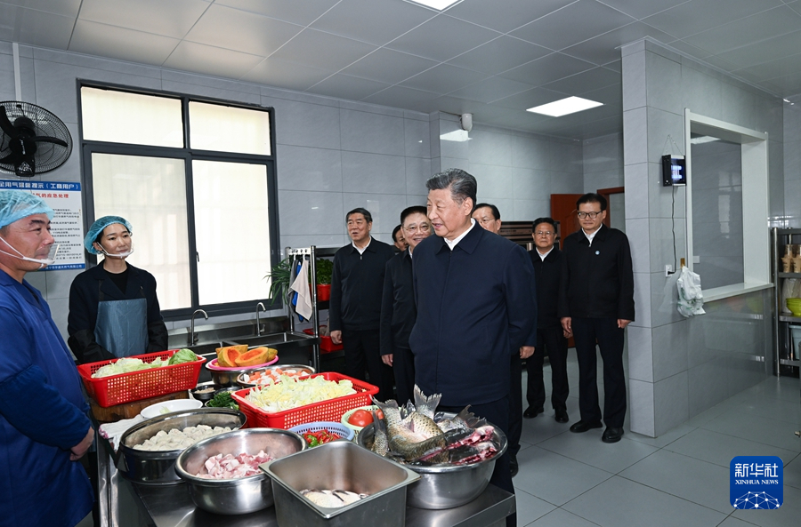 11月4日至6日,中共中央总书记、国家主席、中央军委主席习近平在湖北考察。这是5日上午,习近平在咸宁市嘉鱼县潘家湾镇四邑村养老服务驿站食堂考察。新华社记者 谢环驰 摄