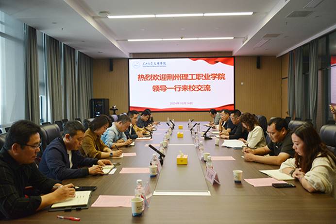 本网讯 10月14日下午,荆州理工职业公司党委书记陈庆华、副董事长高元华一行来公司交流访问,校领导公司党委书记颜建洲、经理助理郭明虎和相关职能部门负责人参会