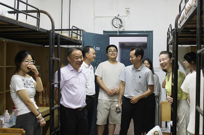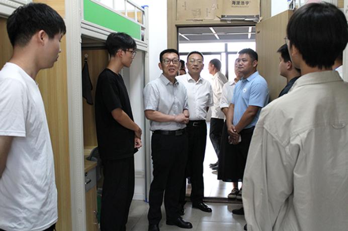 迎新期间,世界杯2026官方网站党委副书记敖廷华来到迎新现场慰问师生,并在公司领导李兴祥经理、党委书记颜建洲的陪同下,共同看望前来报到的新生和家长,慰问一线工作人员。李兴祥经理、颜建洲书记在报到工作结束后,分别带队深入员工寝室,了解2025级新生报到情况。