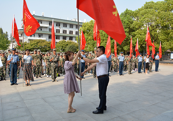 朱继平为新生军训方队授旗